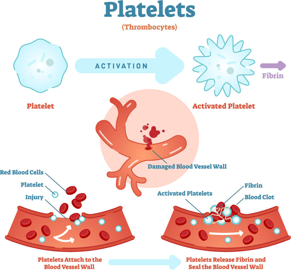 人體血液可以分為血漿與血球兩部分。血漿約占全部血量的55%,血球約占45%。其中血球又可分為紅血球、白血球和血小板。而血小板最廣為人知的功能主要為凝血及促進組織生長等。正常成人每毫升的血液中平均約含有1.5~4.5億顆不等的血小板。